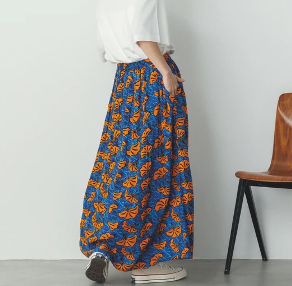 シンプルなトップスを合わせると、スカートの繊細なプリント柄を主役に着こなしていただけます。