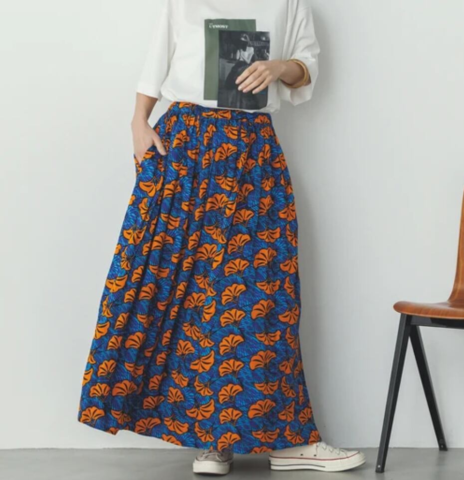 made in INDIAならではの鮮やかなプリントを施した、ギャザースカート。